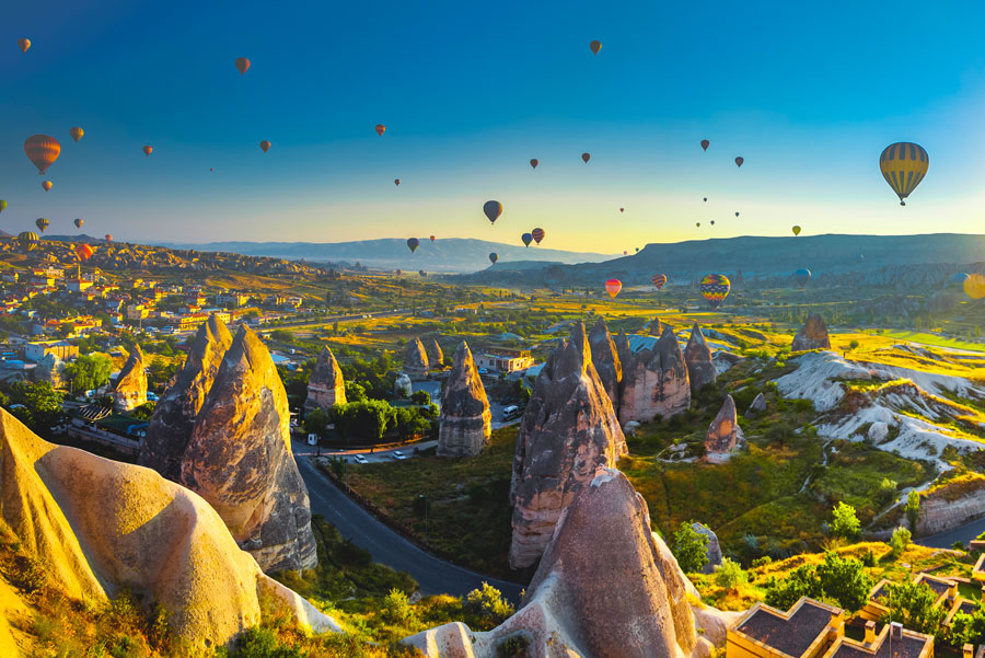 Salida por la madrugada para realizar la visita opcional (con costo adicional) de un fantástico paseo en Globo para admirar la caricia del Sol al amanecer sobre los valles de Capadocia.