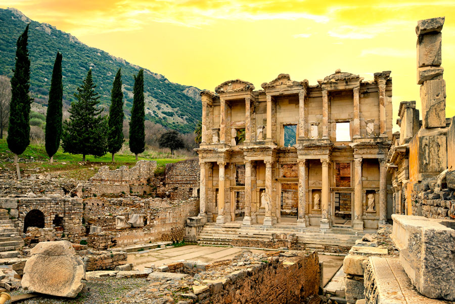 Desayuno en hotel. Traslado en autobús a Selcuk, centro de Éfeso. Continuación a Éfeso para realizar la visita a esta ciudad antigua mejor conservada de Asia Menor. Tuvo una población de 250.000 habitantes y monopolizó la riqueza de Medio Oriente. Visitaremos el Templo de Adriano, los Baños Romanos, la Biblioteca, el Odeón, el Teatro, etcétera, y a continuación visita a la Casa de la Virgen María. Por la tarde visitaremos un taller de cuero, donde podremos ver los famosos tejidos de cuero de la región Egea. Traslado al hotel. Cena y alojamiento.